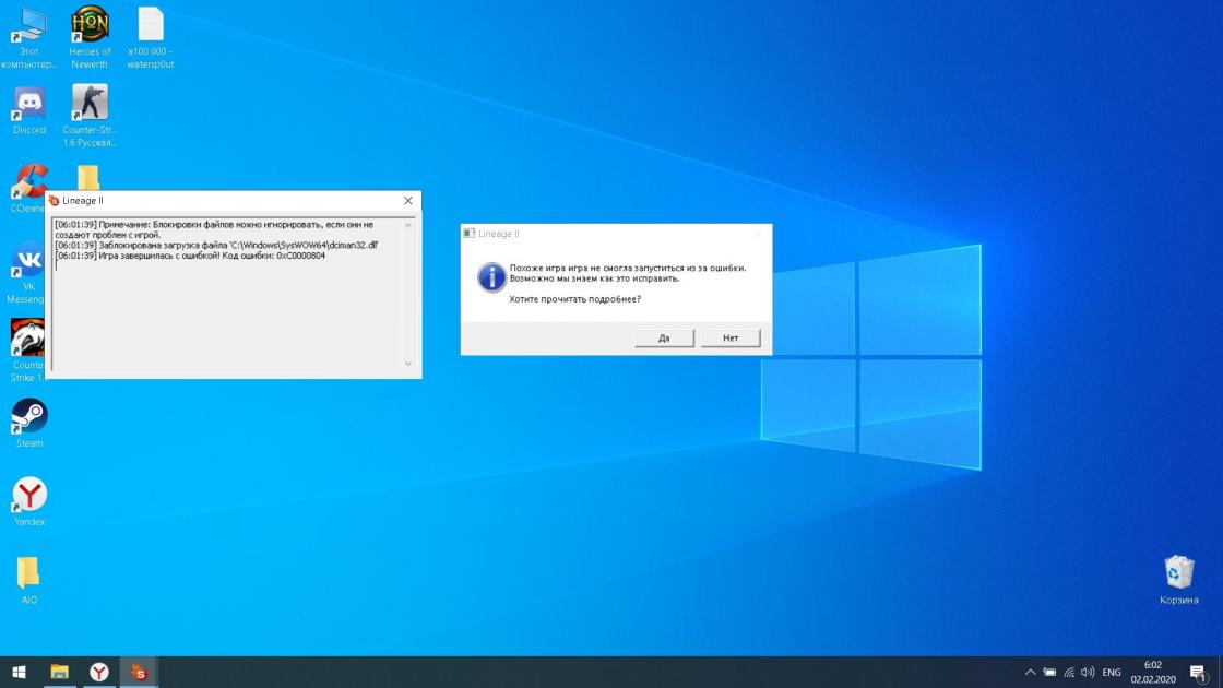 [05:50:19] Игра завершилась с ошибкой! Код ошибки: 0xC0000804