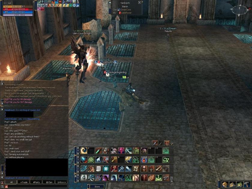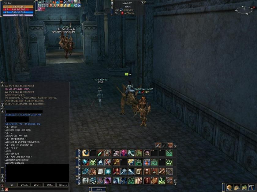 Same guy, same room, same clan, same script, new char - GypmaH by this kind of approach, you're encouraging players to use bots as they know they won't be punished. You just need couple minutes to create new account/character and prepare it for farming... It's more profitable to invest on botting then to donate to the server like this... I might've been not clear with my previous posts, but... PUNISH THE OWNERS!!!
