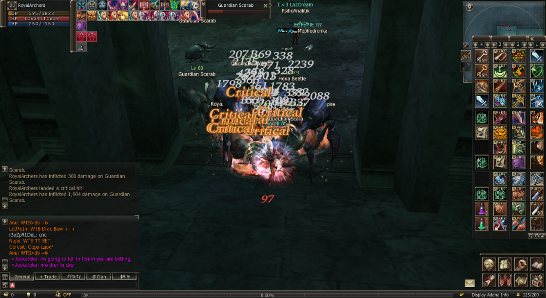 6. RoyalArchers x1 x50 x75 x100 Solo-game, PvP, Raid Boss bug Master: Skill bugs, Geodata Phantom Ranger / Abyss Walker