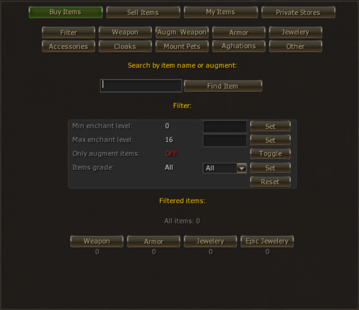 ОПИСАНИЕ LOW CLASSIC INTERLUDE X5 РЕЙТЫ: EXP: 5xSP: 5xAdena: 3xDrop: 3xSpoil: 3xSeal Stones: 2xManor: 1xПремиум аккаунт и Премиум руна:- Премиум Аккаунт: +50% (Увеличивает базовые рейты на +50% EXP x7.5, SP х7.5, Adena x4.5, Drop х4.5, Spoil х4.5). Внимание! Премиум аккаунт не распространяется на Drop с Рейдовых Боссов и Quest Items.- Премиум Руна: +50% (Увеличивает базовые рейты на +50% EXP x7.5, SP х7.5, Adena x4.5, Drop х4.5, Spoil х4.5). Внимание! Премиум Руна не распространяется на Drop с Рейдовых Боссов и Quest Items.Рейдовые \ Эпические Боссы: EXP: 3xРейдовые \ Эпические Боссы: SP: 3xРейдовые Боссы Drop: 1xЭпические Боссы Drop: 1xQuest EXP: 2xQuest SP: 2xQuest Items/Adena: 1x РЕЙТЫ КВЕСТ. ПРЕДМЕТОВ: Gather the Flames: Quest drop. Количество: 1 - 2, Шанс: 70%Relics of the Old Empire: Quest drop of Broken Relic part. Количество: 1 - 2, Шанс: 70%. Quest drop Шанс на Entrance Pass to the Sepulcher: 3%Alliance with Varka Silenos: Quest drop. Количество: 1 - 2, Шанс: 70%Alliance with Ketra Orcs: Quest drop. Количество: 1 - 2, Шанс: 70%War with Ketra: Quest drop. Количество: 1 - 2, Шанс: 70%War with Varka: Quest drop. Количество: 1 - 2, Шанс: 70%Third Class Quests: 1xSeekers of the Holy Grail: Quest drop. Количество: 1, Шанс: 100%Guardians of the Holy Grail: Quest drop. Количество: 1, Шанс: 100%The Finest Food: Quest drop. Количество: 2, Шанс: 100%Four Goblets: 1xLegacy of Insolence: Quest drop of papyruses. Количество: 1, Шанс: 60 - 80% Supplier Of Reagents: Quest drop of reagents. Количество: 1 - 2, Шанс: 70% Whisper Of Dreams - Part 1: 1xWhisper Of Dreams - Part 2: Quest drop. Количество: 1, Шанс: 90%Exploration of the Giants' Cave, Part I & II: Quest drop. Количество: 1 - 2, Шанс: 70% Daimon the White-eyed - Part 1: Quest drop. Количество: 1 - 2, Шанс: 70%Coins of Magic: 1xSeductive Whisper: 1xOther Quest Item Drop Rate: 1-2x ПРОФФЕССИЯ & САБКЛАСС Получение первой профессии: стоимость 200.000 Adena или 5 Coin of Luck- или прохождение квеста. Получение второй профессии: стоимость 2.000.000 Adena или 20 Coin of Luck - или прохождение квеста. Получение третьей профессии: квест полностью, без возможности покупки. Получение Sub Class: Квест полностью. Получение Nobless: Квест полностью. УЛУЧШЕНИЕ ПРЕДМЕТОВ: Безопасная заточка : +3 Максимальная заточка: +16 Шанс улучшения предметов: Обычный Enchant Scroll - 45%, Blessed Enchant Scroll - 50% Шанс получить скилл с Life Stones: Top - 10%, High - 4%, Mid - 3%, Simple - 1% НАВЫКИ & БАФЫ: Максимальное количество слотов для бафа: 20+4 Время действия положительных эффектов: - Время действия бафа: 60 минут. - Время действия бафа с баф монетой: 120 минут. - Время действия бафа 3 профессии (COV POW POF и.т.д): 5 минут. - Время действия ПЕТ бафа, танцев и песен: 5 минут. Время чтения /unstuck: 60 секунд. Навыки аугментации работают согласно официальному серверу: - Возможно использование активного и пассивного умения (эффект не исчезает после снятия оружия). Для изучения умений необходимо SP. Книги для изучения навыкав необходимы только после третьей профессии. ВРЕМЯ ВОЗРАЖДЕНИЯ РЕЙД И ЕПИК БОСОВ: Рейдовые Боссы: 12 - 24 hoursРейдовые боссы для альянса (Shadith, Mos, Hekaton, Tayr): 12 - 24 hours Рейдовые боссы для саб класса (Cabrio, Kernon, Golkonda, Hallate): 12 - 13 hours Рейдовый босс для дворянства (Flame of Splendor Barakiel): 12 - 13 hours Dream Boss: 20:00* UTC +3 UTC +3 (респавн 1 день) Queen Ant: 21:00 - 22:00* UTC +3 (респавн 1 день, только первый месяц после старта) Orfen: 36 - 38 hours Core: 36 - 38 hours Zaken: 48 - 50 hours Frintezza: 22:00 - 24:00* UTC +3 (респавн 2 дня, время на убийство 2 часа) Baium: 22:00 - 24:00* UTC +3 (респавн 5 дней, время на убийство 2 часа) Antharas: 22:00 - 23:00* UTC +3 (респавн 8 дней, время на убийство 2 часа) Valakas: 23:00 - 24:00* UTC +3 (респавн 11 дней, время на убийство 2 часа) ДРУГИЕ ОСОБЕННОСТИ: Количество запускаемых окон клиента: 5 PvP-зоны Valakas, Antharas, Frintezza, Core и в локации Dream Boss. Запрещена использовать персонажей выше 49 уровня в зоне эпического босса Ant Queen Цикл Seven Signs: 1 неделя - Вы сможете присоединиться к борьбе Seven Signs и собирать Seal Stones с понедельника 18:00, а периоды "печати" начнутся в пят