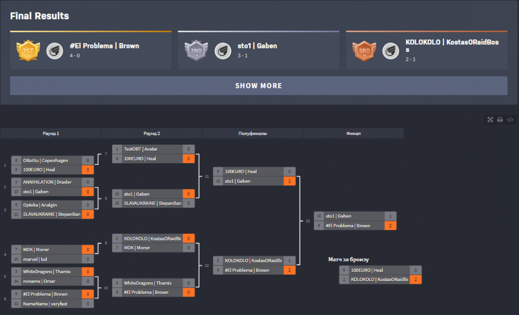 4. РУССКИЙ Дополнительная информация: Некоторые участники турнира сразу попадут во второй тур сетки, поясняем этот момент заранее чтобы в будущем не возникло вопросов и споров. Так вот, Для того чтобы сетка сошлась идеально нужно определенное количество команд, а именно 4,8,16,32,64 и т д, если команд например 21, или любое другое количество кроме 4,8,16,32,64, то не всем участникам хватает соперников. Например имеем 21 команд участников (как в прошлом турнире) , то-есть 10 пар по 2 и 1 лишний, но даже если-бы было 20 или 22 то во втором туре осталось бы 10 ( или 11 ), а в третий тур бы перешли 5 команд или 5+1 лишняя, что приводит всю турнирную таблицу в тупик т.к. не хватает соперников для финальных боев. (т.к. 5 на 2 ровно не делиться, как и 3 на 2 ровно поделить нельзя). Турнирная таблица которой мы пользуемся для организации турнира ( https://challonge.com/ ) автоматически формируется исходя из количества участников, то-есть она на перед просчитывает нужное количество раундов, а команды у которых нет соперников в СЛУЧАЙНОМ порядке автоматически переходят во второй тур, делаю акцент на том что это делается именно в случайном порядке и на стриме (таймкод 1:12:35) перед началом турнира видно как я нажимаю кнопку "Случайное ранжирование команд". Альтернатив этому только 2, либо формировать турнир строго по количеству 4,8,16,32,64 и.т.д, либо добавлять команды уже в процессе турнира что хуже т.к. это уже не случайность, а вмешательство. Надеюсь я ответил на все вопросы по поводу турнирной таблицы и в будущем таких вопросов больше не будет. ENGLISH Additional Information: Some participants in the GvG tournament will immediately moved into the second round of the tournament grid, we explain this point in advance so that in the future there are no questions and disputes. So what this mean? In order for tournament grid to fit perfectly, we need a certain number of teams, namely 4,8,16,32,64, etc., if there are 21 teams, for example, or any other number except 4,8,16,32,64, then not all participants will be enough opponents. For example, we have 21 teams of participants as in last tournament, that is, 10 pairs of 2 teams and 1 extra team without opponent, but even if there were 20 or 22, then in the second round there would remain 10 or 11 teams and in the third round will be 5 or 5 + 1 teams, so anyway we have one team without opponent, which leads the whole run tournament to impasse becouse not enough opponents for the final fights. (since 5 cannot be divided into 2 whole number, just like 3 cannot be divided into 2 whole number). Tournament table which we use to organize GvG tournament ( https://challonge.com/ ) is automatically generated based on the number of participants, that is, it calculates the required number of rounds, and teams that do not have opponents will be randomly and automatically move into the second round of the tournament grid I focus on the fact that this is make in RANDOM order and on the last gvg stream (timecode 1:12:35) before the start of the tournament I click "Random ranking of teams" button. There are only 2 alternatives to this, either form a tournament strictly according to the number of teams 4,8,16,32,64, etc., or add teams after the start of the tournament, which is worse because this is no longer random, this is bad intervention. I hope I answered all the questions regarding the standings and there will be no more such questions in the future.
