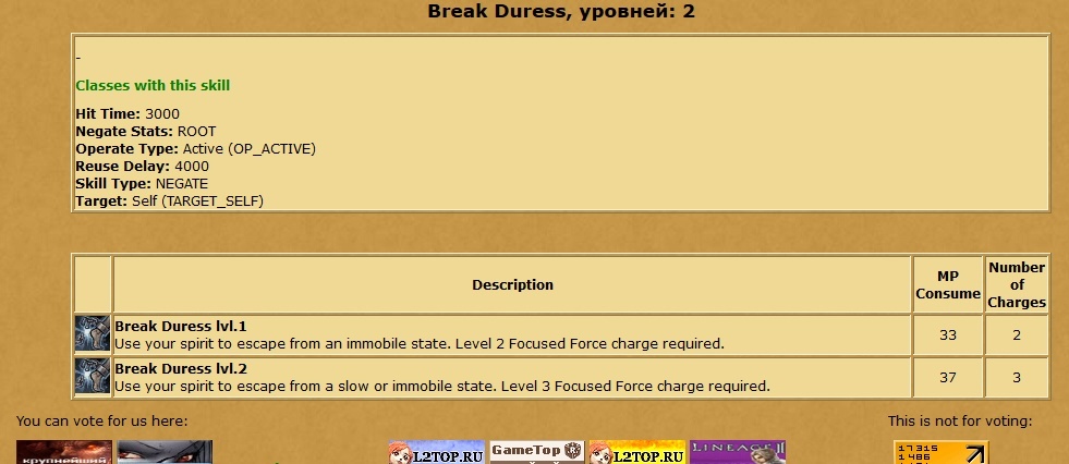 Brake Dures Reuse Delay: 4000 То есть 4 секунды . http://l2kc.ru/skill/461/1 А вот каст даже на птсах долгий .