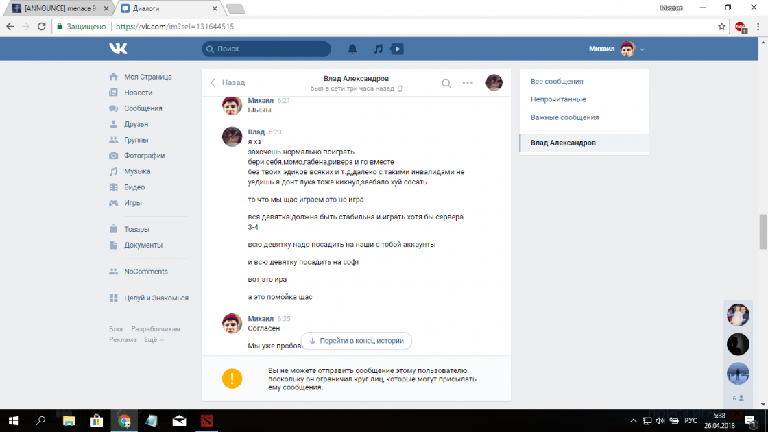 Да и воопще иди нахуй,играли своим паком и асист был,и проблем не было столько сколько с тобой,придумал блять очередную отмазку,спиздил валакаса с зарплатой и покикал нас как чушка не слова не уронив.